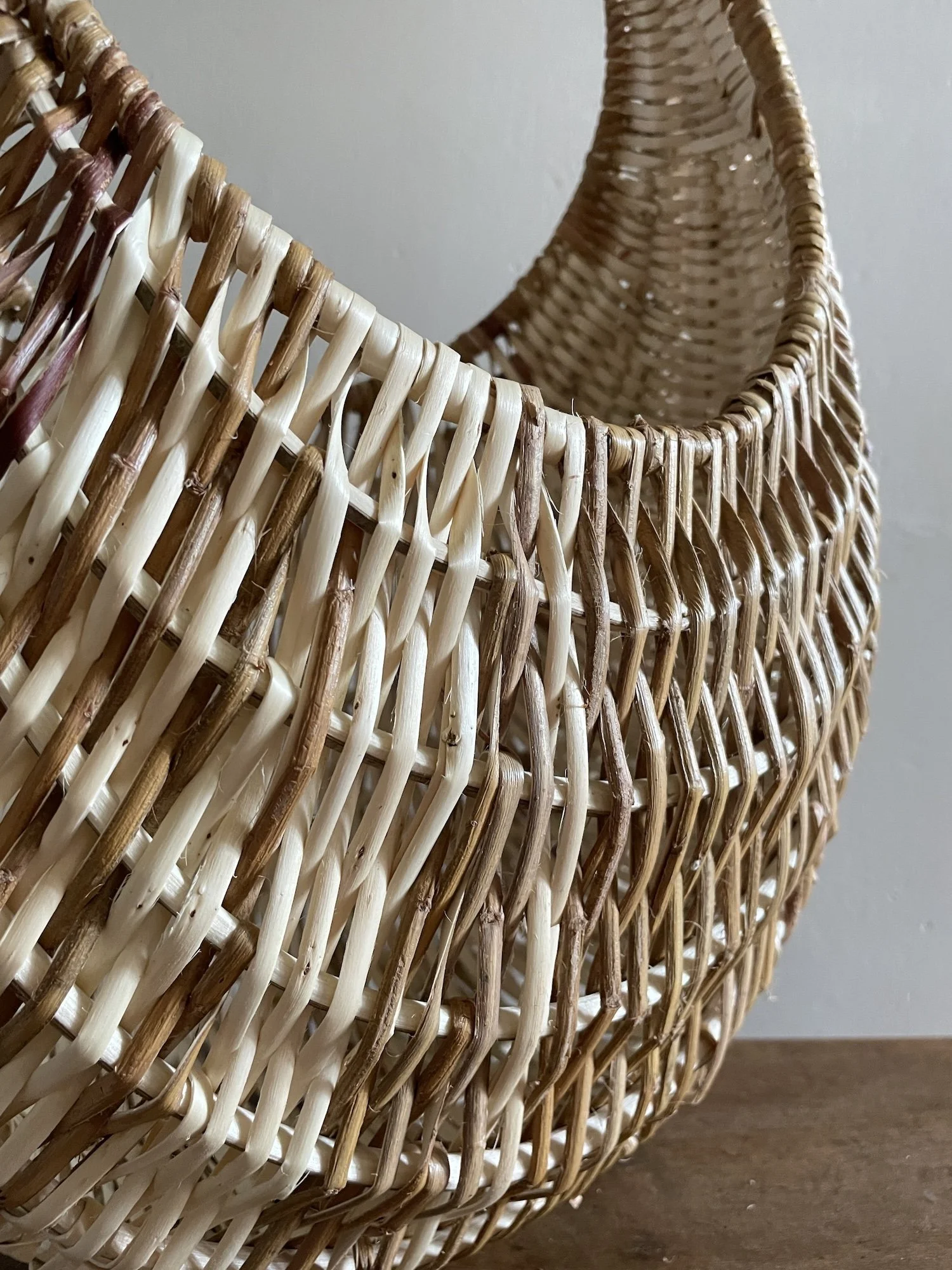 Through exploring a hazel hoop and rib construction I can push further than ever before the oval form I love, I can play with balance, I can offer the lightest touch of willow. Sold. 2024.