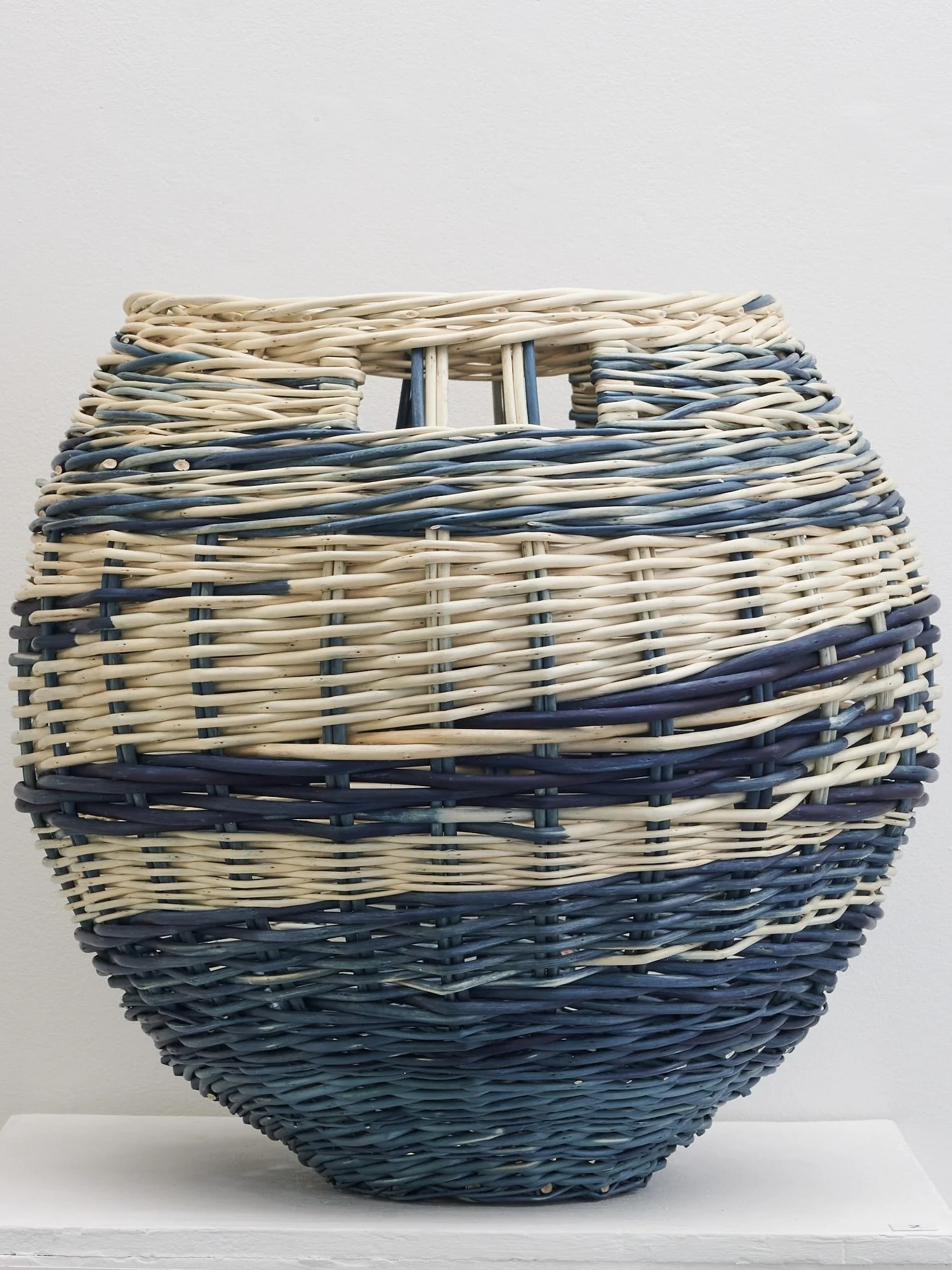 Spherical shaped basket designed to showcase indigo dyed willow & traditional English techniques.
